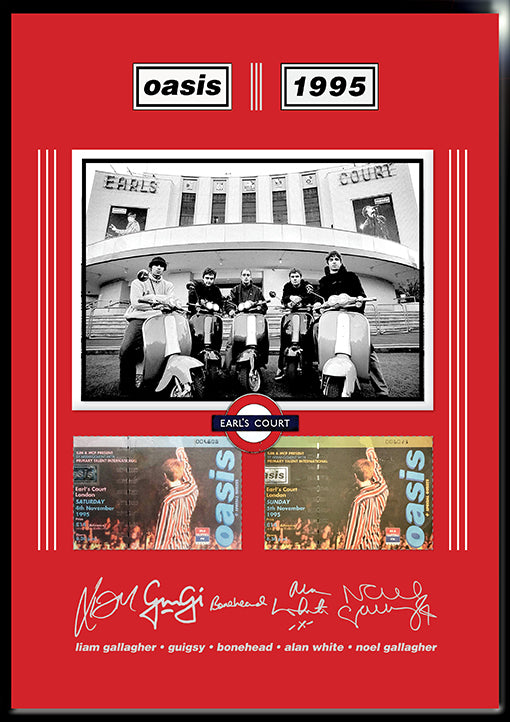 We created this OASIS Limited Edition Print to celebrate one of the defining moments in the success of OASIS at their zenith. In November 1995 they played to 20,000 people over the 2 night sell out at the Earls Court Exhibition Centre, London, which was the biggest ever indoor concert in Europe at the time.